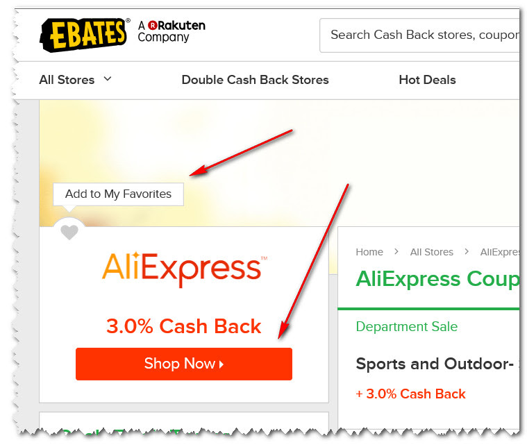 אתם נמצאים אם האתר נמצא ברשימה של EBATES ומאפשר כניסה מהירה