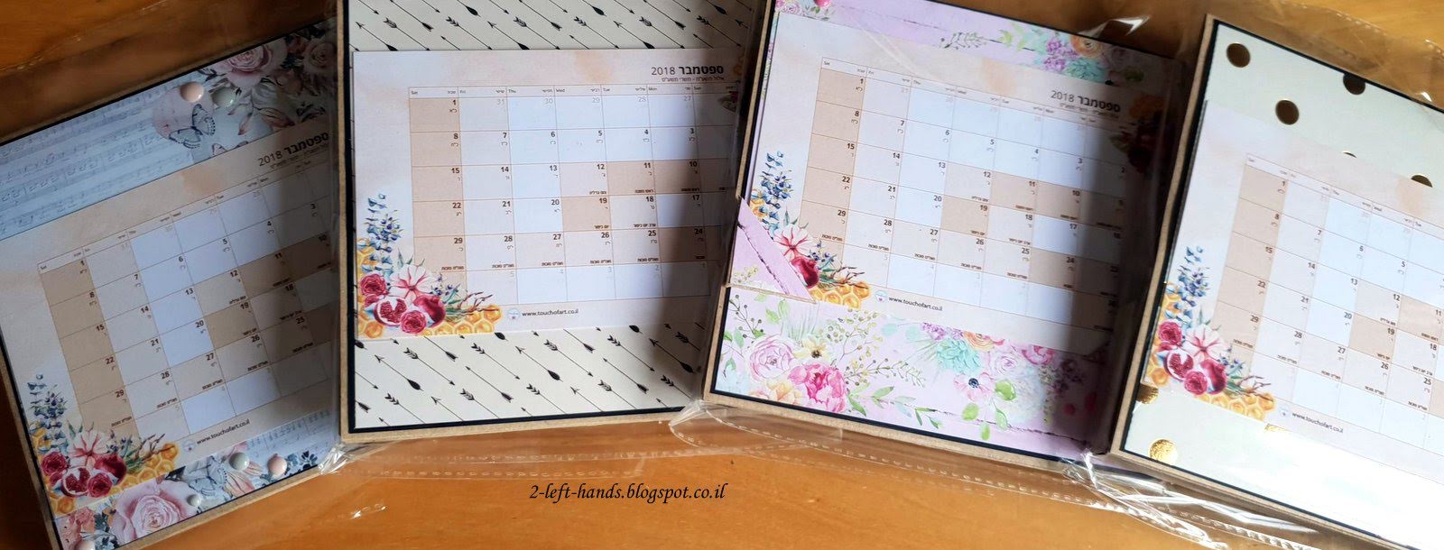 בחנות Touch of art מכרו לקראת החג קיט של לוח שנה. מאוד התלהבתי ורכשתי ארבעה. הקיט מגיע מוכן עם הקארדסטוק בצבע קראפט חתוך עם הוראות לקיפול ועם גלויות מעוצבות של ראש השנה.
