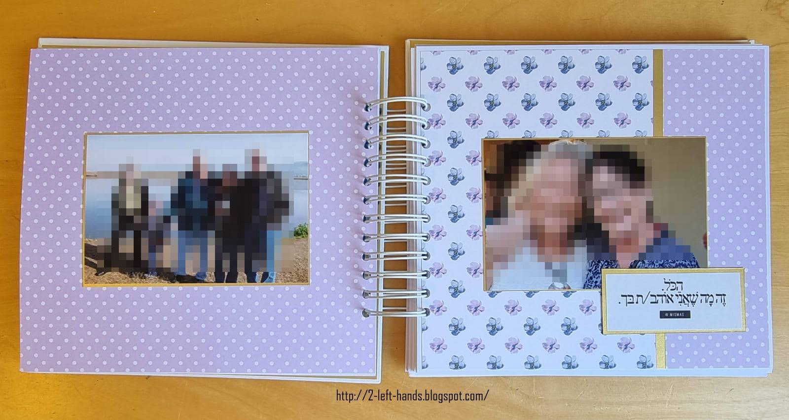 דפי התמונות שלי היו עם יותר מדי אלמנטים ואז האלבום שלי היה שמן מדי, תראו איך מהצד הוא קופץ ואי אפשר לסגור אותו וגם הדפדוף לא עובד טוב. בתמונה למטה השתמשתי בספירלה בעובי 1.25 אינץ.